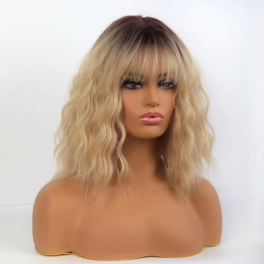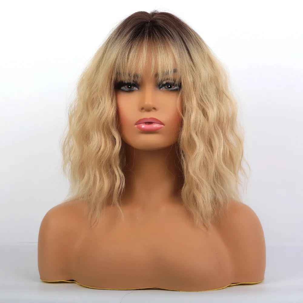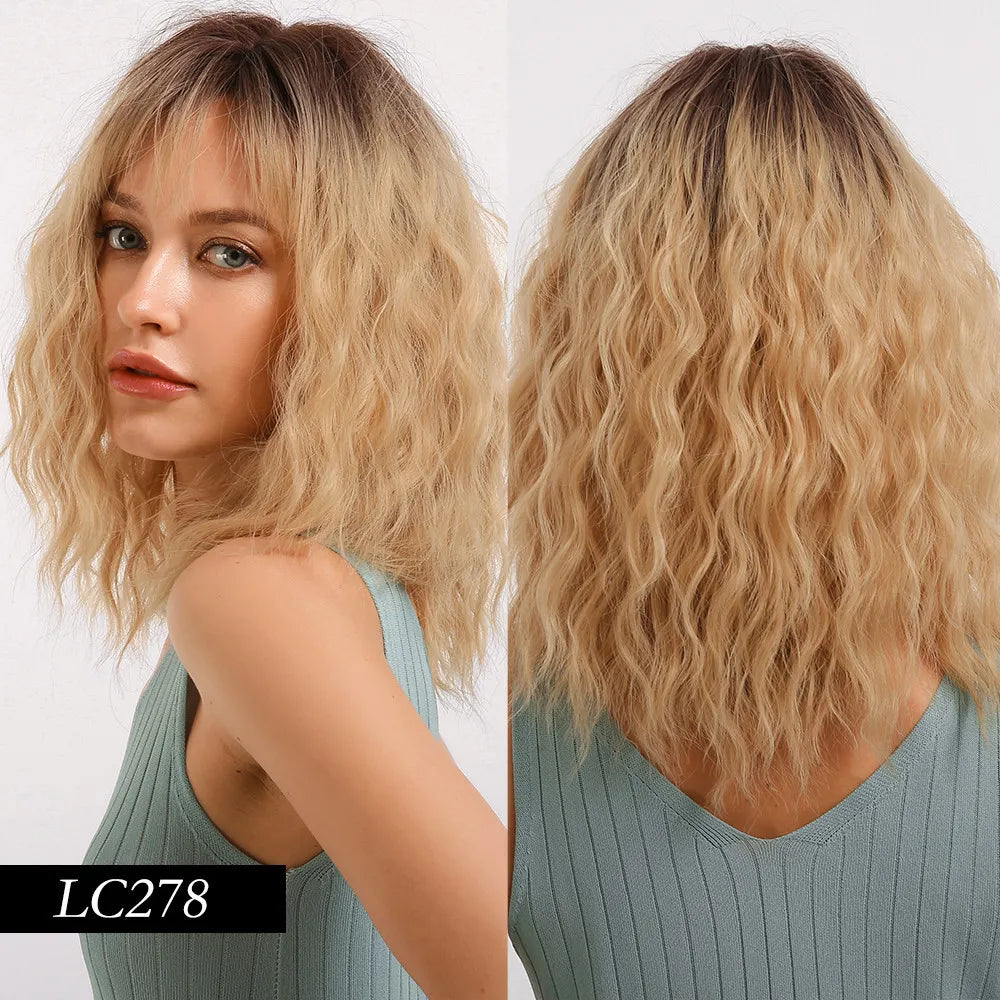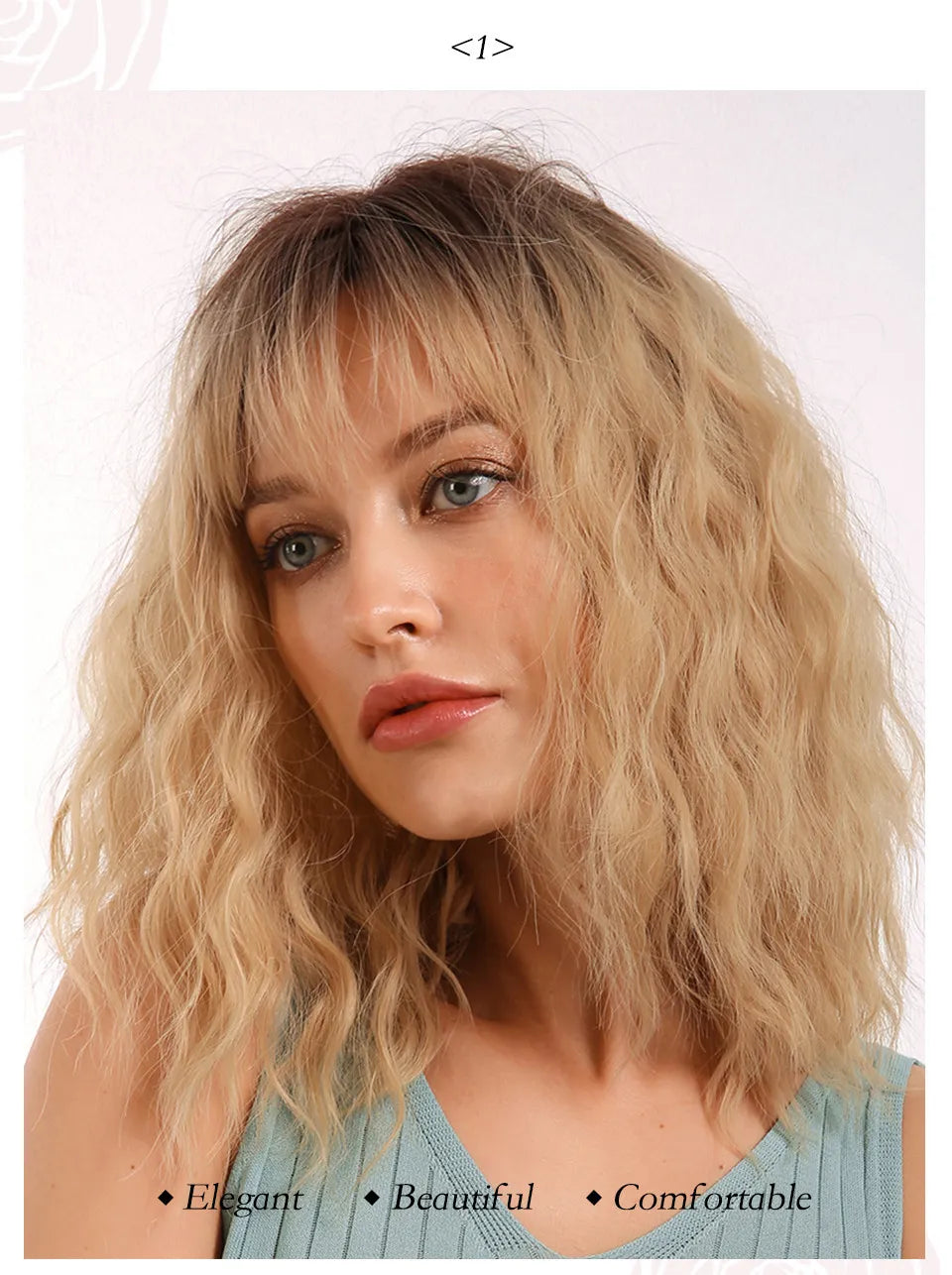 Long Bob Light Color Wavy Synthetic Hair Women Wig With Bangs 18 Inches