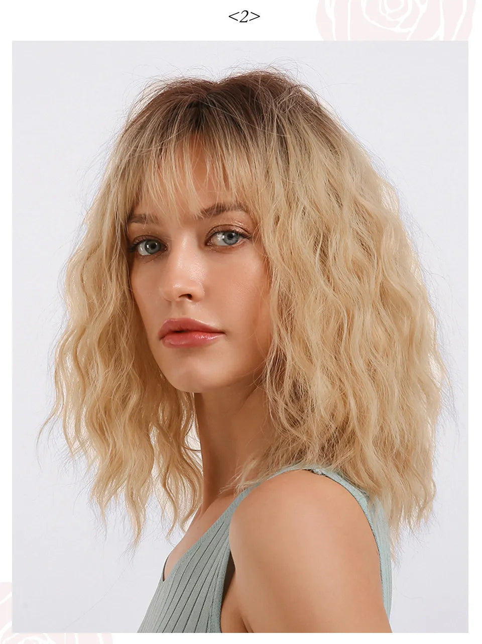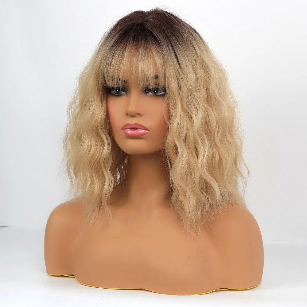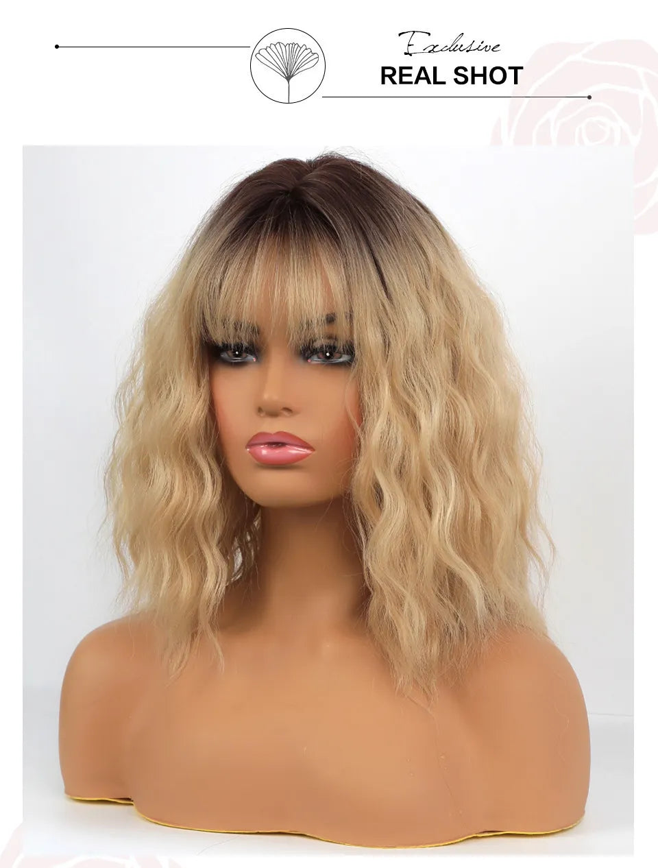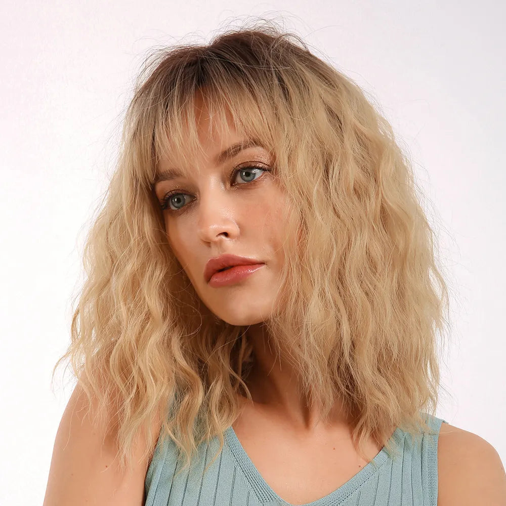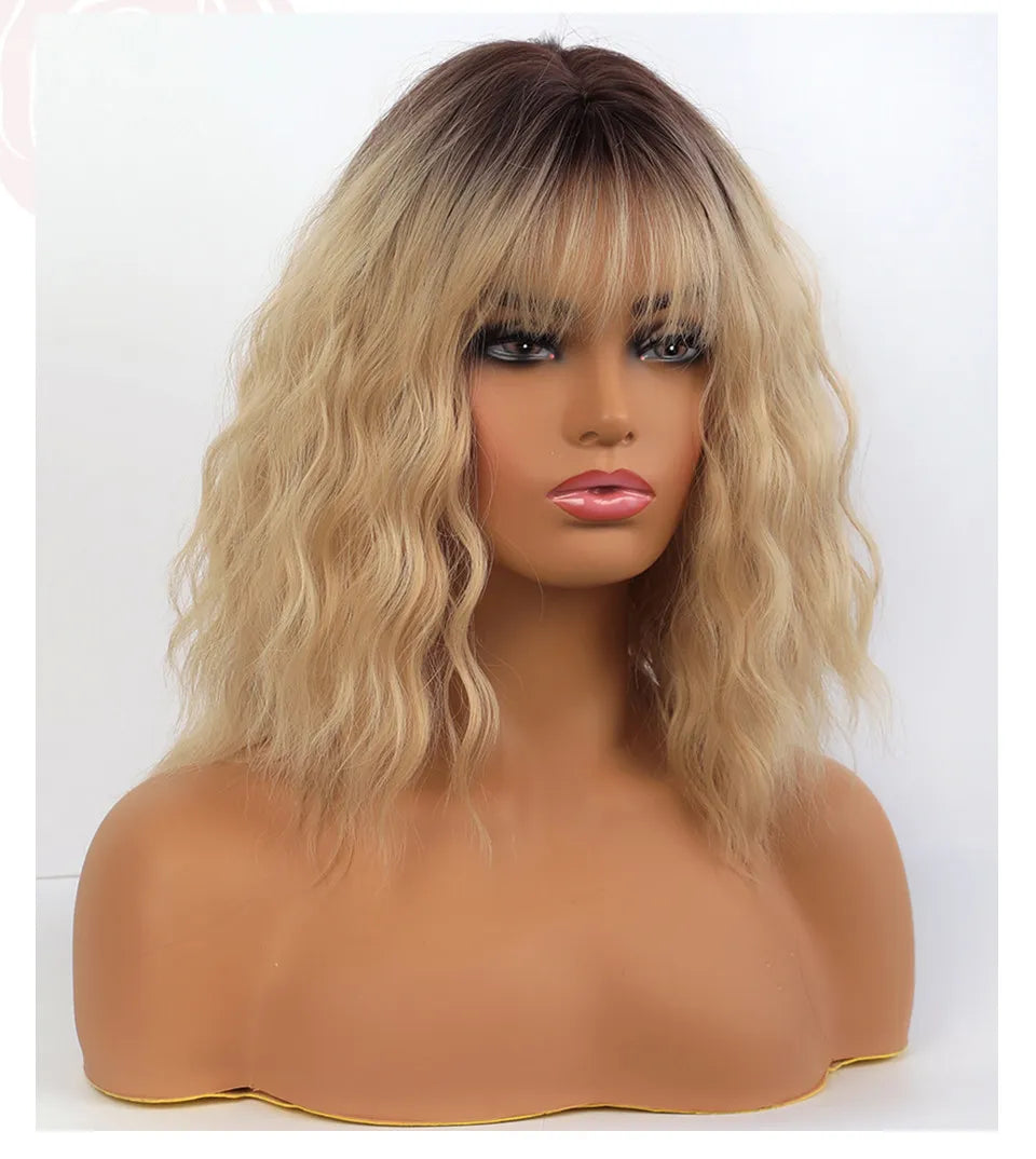 Long Bob Light Color Wavy Synthetic Hair Women Wig With Bangs 18 Inches