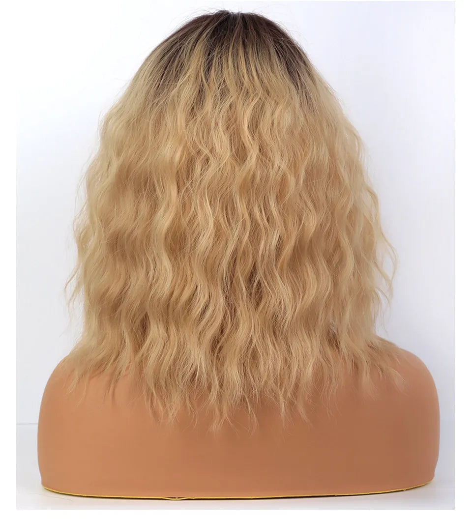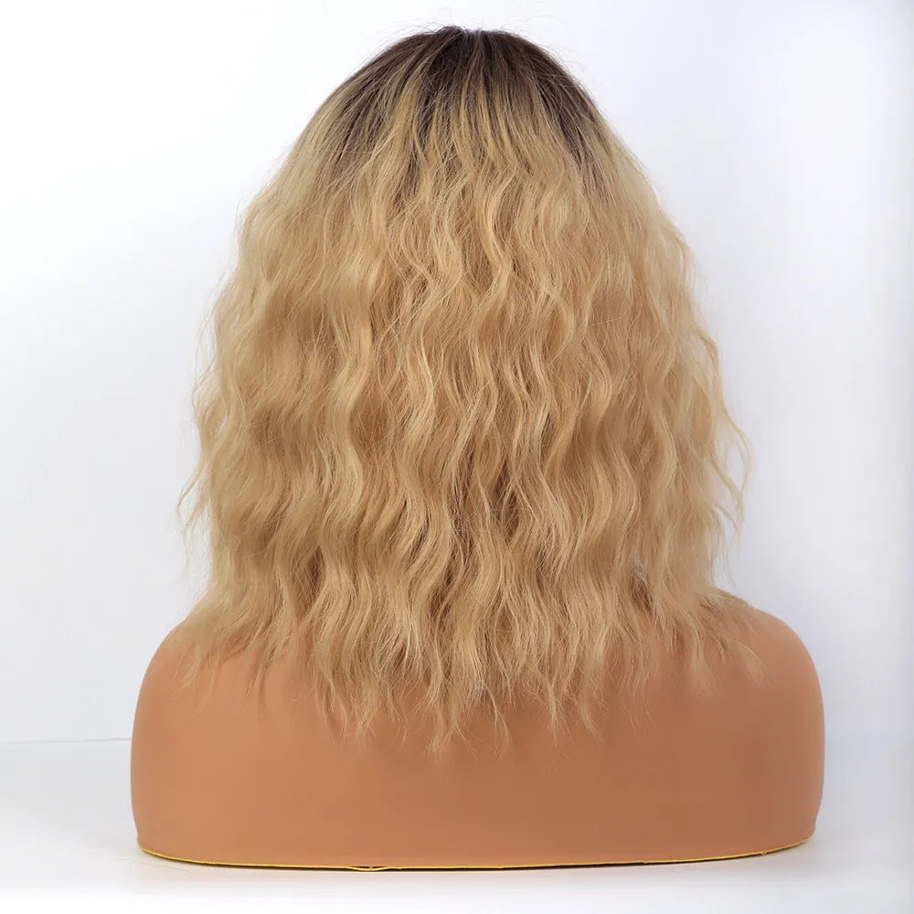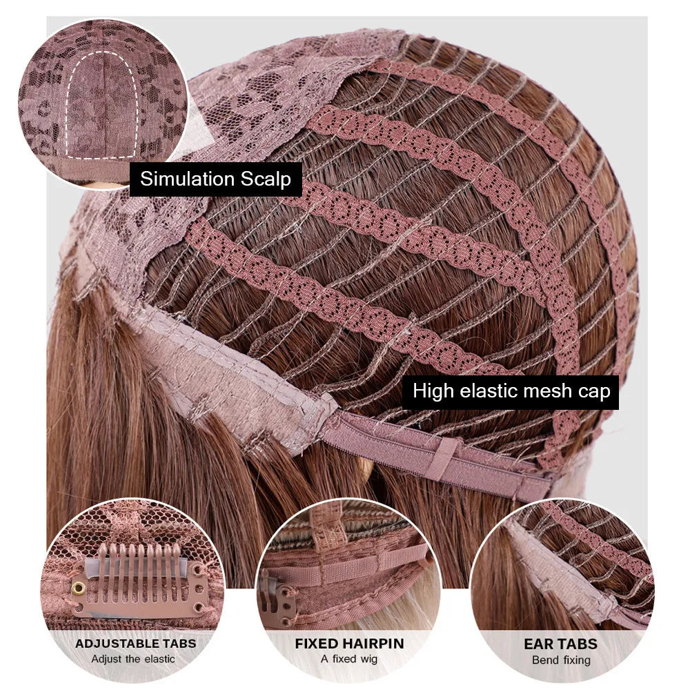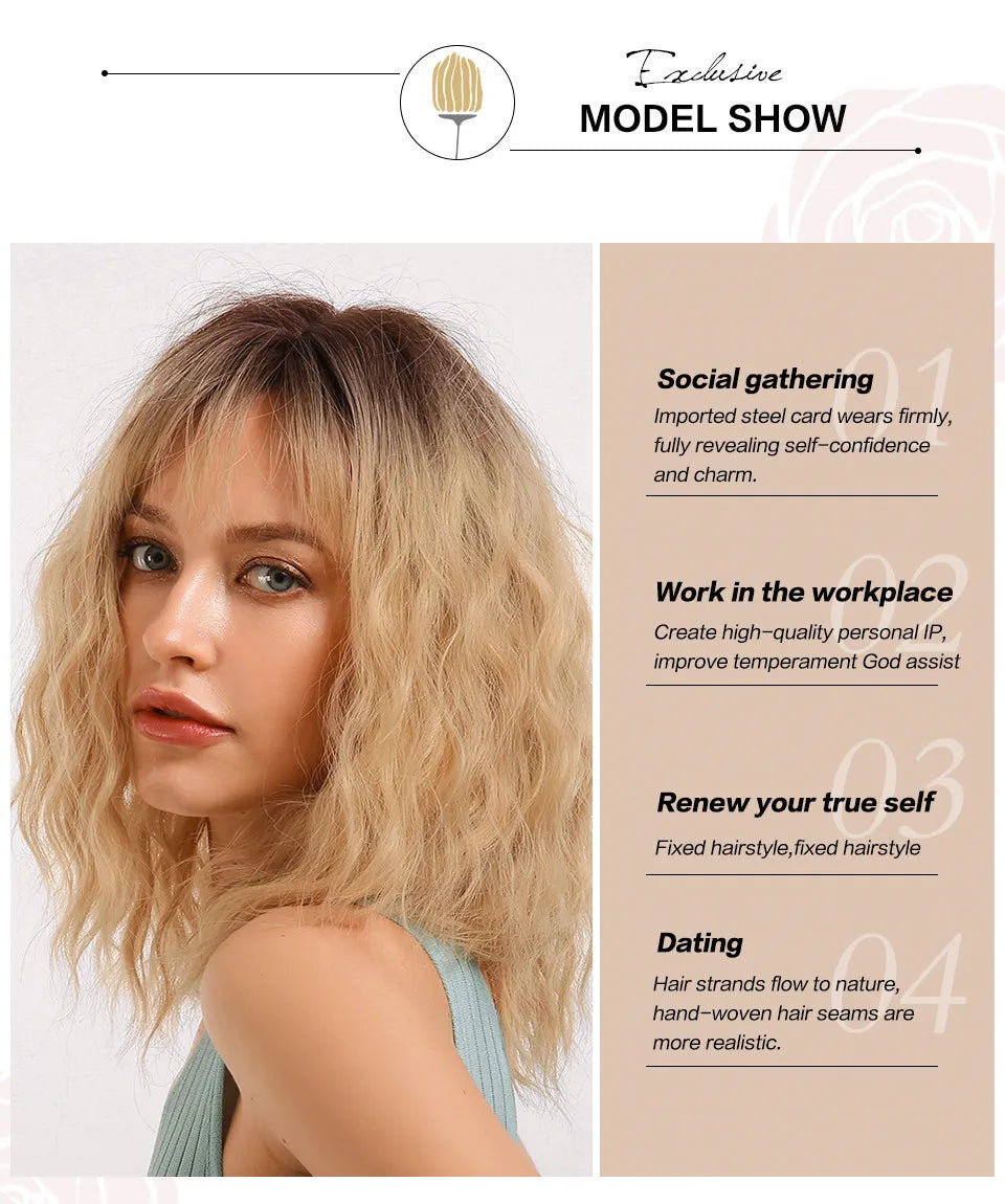 Long Bob Light Color Wavy Synthetic Hair Women Wig With Bangs 18 Inches
