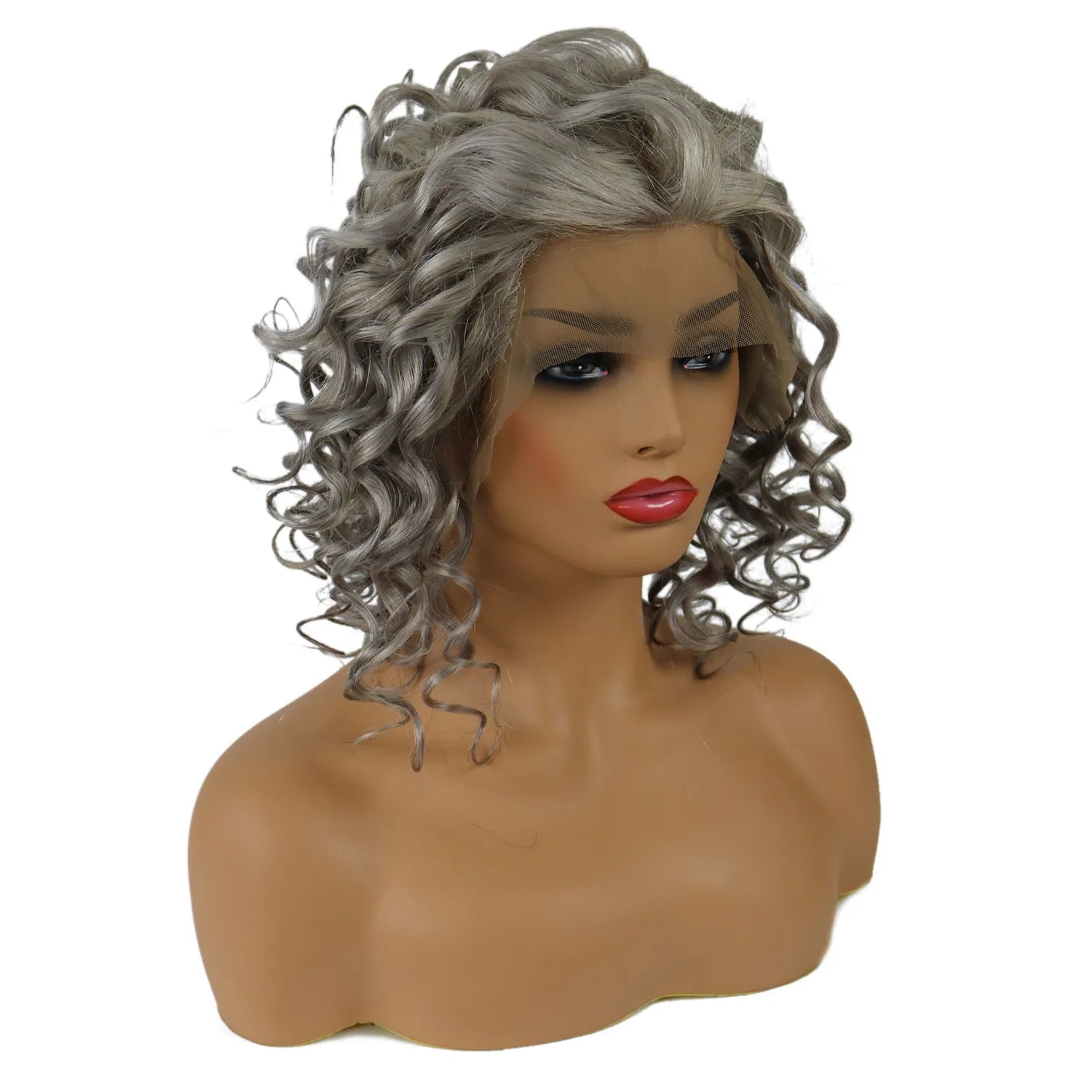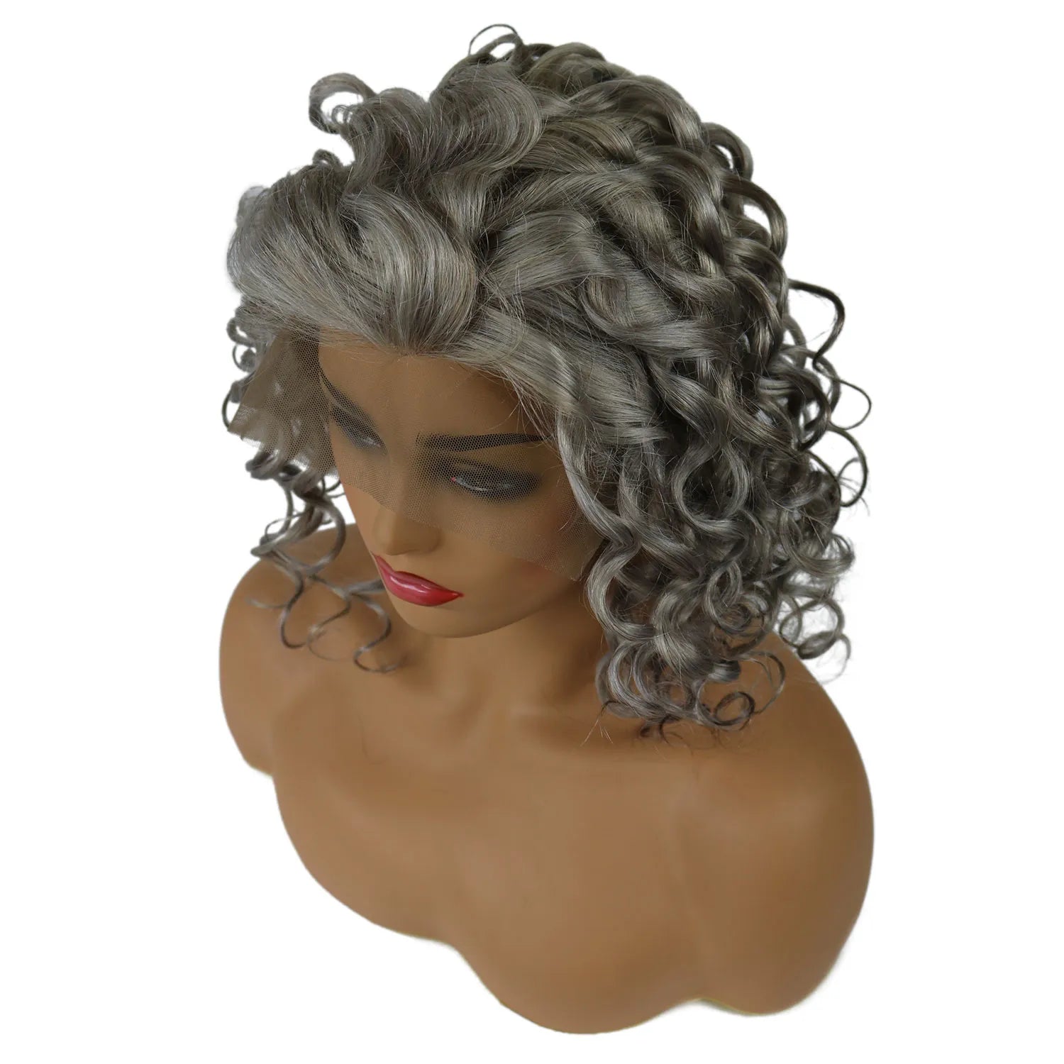 Salt and Pepper Hair Medium Length Human Hair Lace Front Curly Wigs 18 Inches